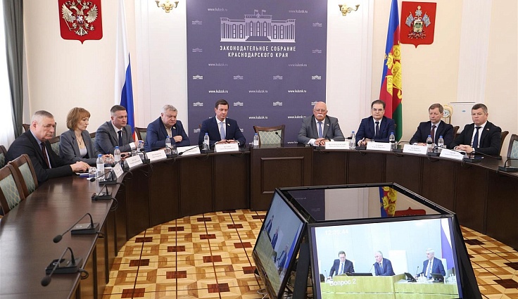 Председатель Законодательного Собрания края Юрий Бурлачко, председатель краевой Контрольно-счетной палаты Сергей Усенко, первый заместитель председателя комитета по финансово-бюджетной, налоговой, экономической политике, предпринимательству и финансовым рынкам Алексей Титов и депутаты краевого парламента участвовали в рассмотрении отчета из студии краевого парламента.